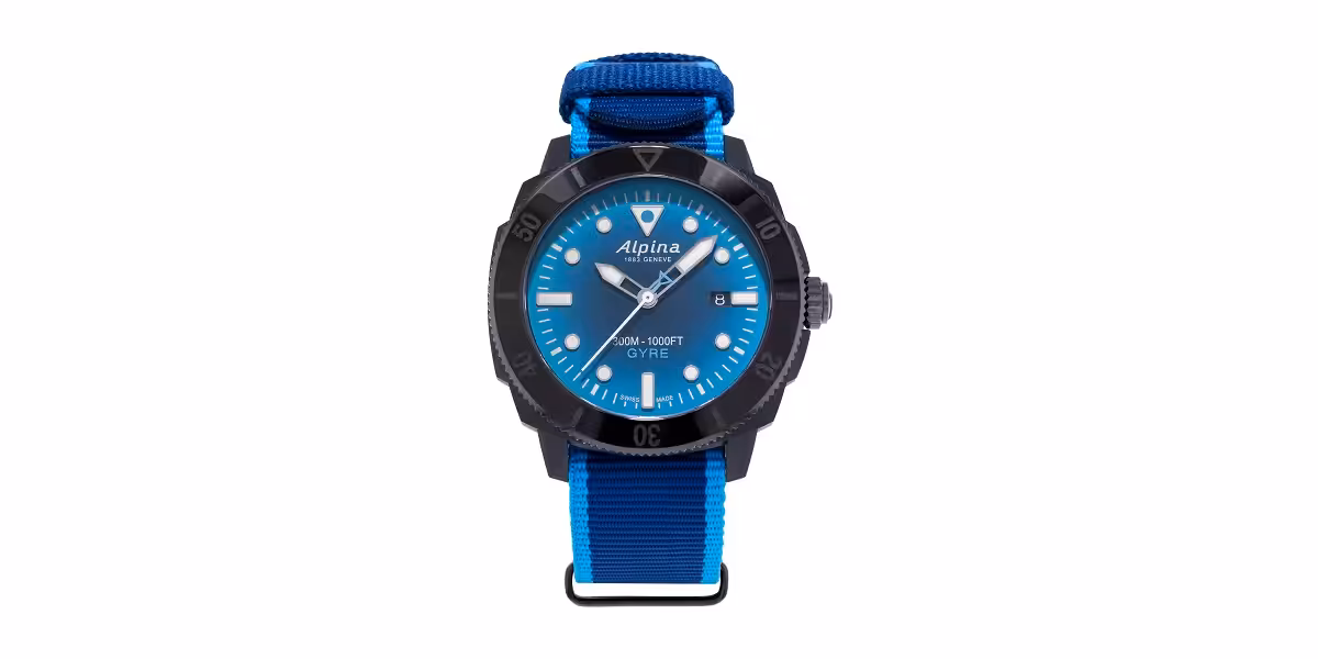 Le fabricant suisse Alpina s’est associé avec la start-up Gyre Watch, fournisseur de matériaux recyclés, et Surfrider Foundation Europe, ONG devenue une référence dans le combat pour la protection de l’océan et de ses usagers. La marque propose une série limitée de montres de plongée dont les boîtiers son composés à 70 % de débris de filets de pêche. Cette gamme Seastrong Diver Gyre automatique est étanche à 300 mètres, équipée d’un mouvement automatique suisse à 26 rubis, d’un verre saphir et d’un bracelet à la norme OTAN. Elle est disponible en version homme (D 44 mm) et femme (D 36 mm).