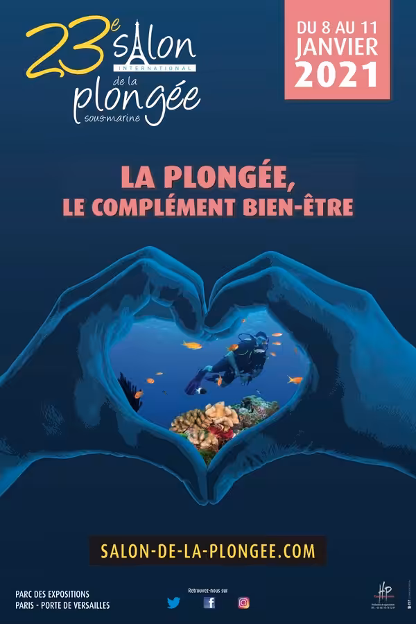 Ressourcez-vous, retrouvez-vous, plongez ! La direction du salon de la Plongée vient de dévoiler l’affiche et la thématique de la prochaine édition, qui se tiendra du 8 au 11 janvier 2021 au parc des Expositions de la porte de Versailles à Paris.
