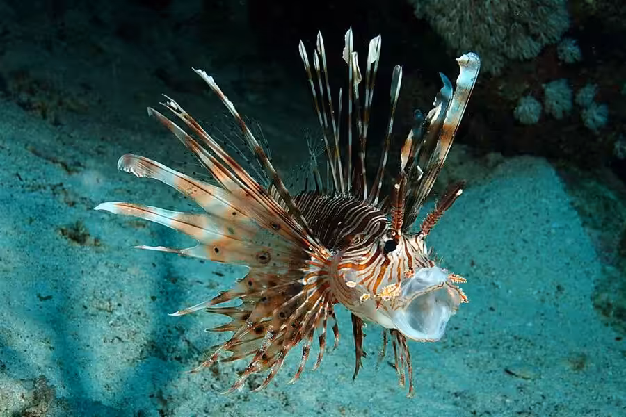 6) Un chasseur nocturne : Pterois volitans chasse principalement la nuit même si des individus ont déjà été observés actifs de jour. Attention, de nuit il est particulièrement attiré par les phares des plongeurs…