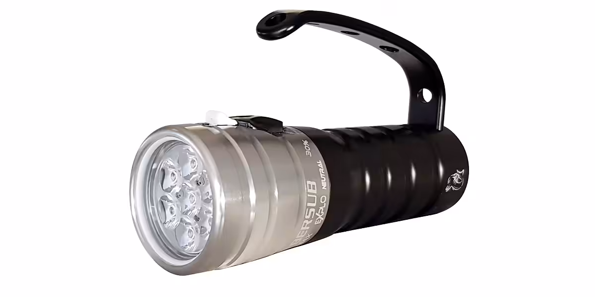 Scubapro ajoute à son catalogue déjà bien fourni un petit phare (13cm x 5,6cm) puissant et multi-usage. 2100 lumens avec un faisceau de 65° et 800 lumens sur 15° : voilà qui devrait autant combler le photographe-vidéaste que l’amateur d’exploration. La puissance est ajustable de 25 à 100 %, un seul bouton permettant de piloter le phare. Etanche à 100 mètres, il est livré avec ses accus Li-Ion et son chargeur. Deux versions sont disponibles : avec des poignées Goodman (2 tailles), une poignée Pistolet et un adaptateur GoPro, ou sans poignée avec une dragonne, mais dans les deux cas dans une jolie petite mallette de transport en EVA.