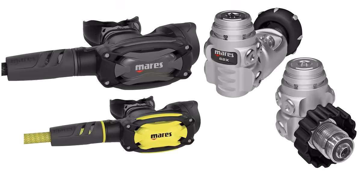 Le détendeur Mares SVS 62X constitué d’un premier étage à membrane compensé, doté du système AST pour éviter les entrées d’eau, reste léger (525 g en din 300 b) et compact, est couplé avec le second étage symétrique SXS et son octopus utilisable à droite comme à gauche. L’ensemble aux performances plutôt généreuses pèse seulement 811 g. Idéal pour voyager !