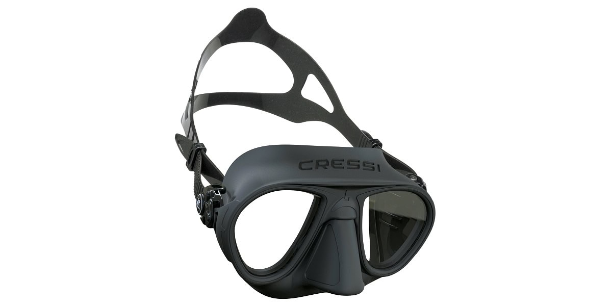 Conçu pour l’apnée, le masque Calibro concilie un tout petit volume et un encombrement parfaitement adaptés aux immersions profondes, avec un champ de vision digne d’un modèle beaucoup plus volumineux. Son secret ? Une absence de cerclage qui permet d’utiliser des verres plus grands et plus près des yeux, ceux-ci étant posés en oblique. La vision vers le bas est exceptionnelle pour un si petit gabarit. Les boucles pivotantes à ajustement micrométrique, directement intégrées à la jupe, permettent un confort d’ajustement idéal. La jupe et la sangle anatomique sont en silicone avec une finition mate pour minimiser les reflets.