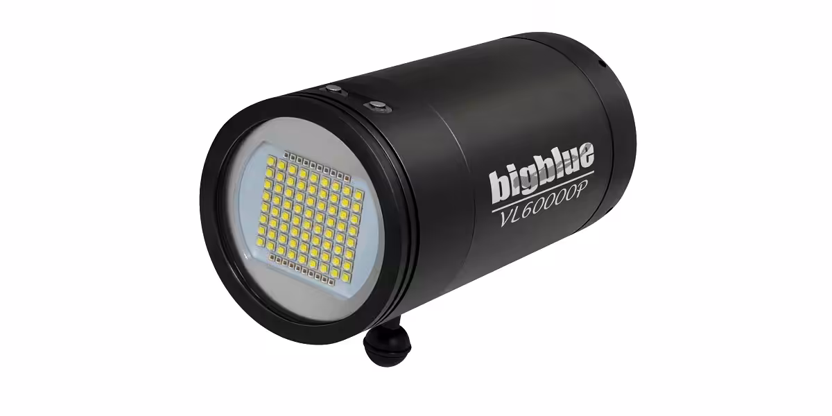 Bigblue poursuit sa montée en gamme avec son phare VL60000P à la puissance colossale annoncée de 60 000 lumens !Ce beau bébé de presque 4 kg (3,766 kg) dispose d’un faisceau de 160° sans point chaud à 6 500°K et d’une autonomie de 1h30 à pleine puissance (4 niveaux d’intensité) fournie par deux gros accus. Il est livré dans une valise étanche avec chargeur, boule de fixation et poignée réglable.