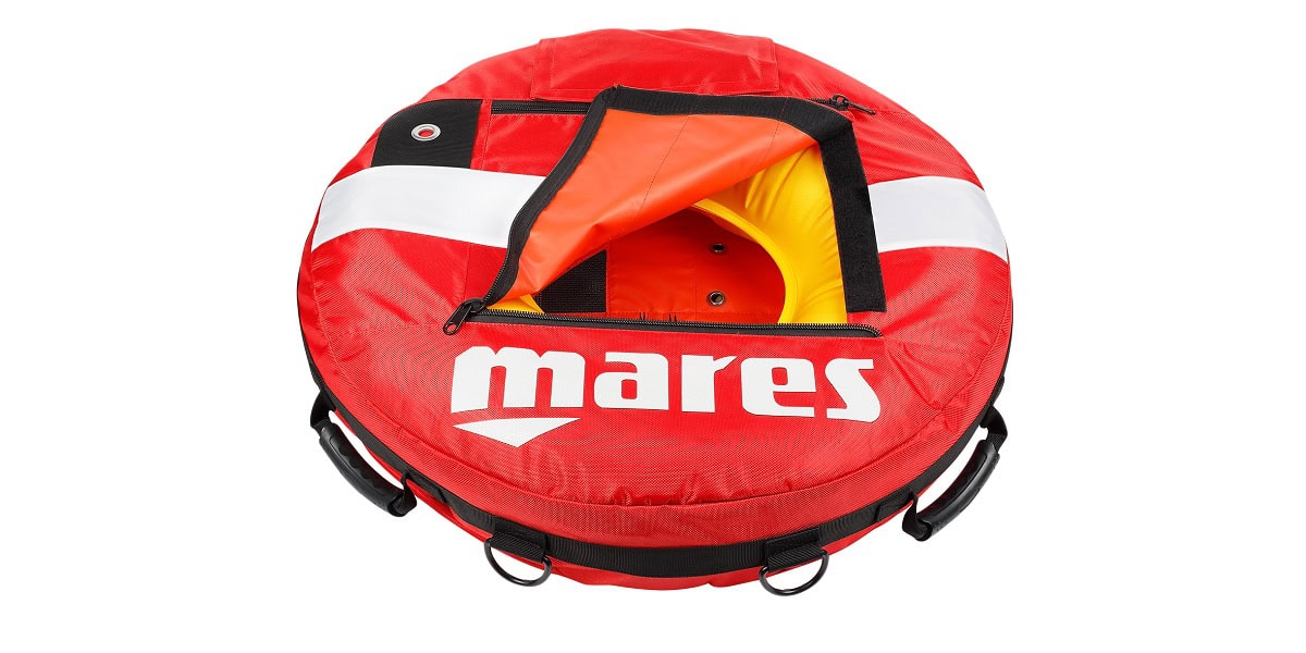 Mares comble un vide en proposant une bouée de signalisation qui répond aux attentes des apnéistes à l’entrainement en mer. Avec ses poignées, cette bouée en double enveloppe dispose d’un volume suffisant pour sécuriser 4 nageurs. elle offre en outre un compartiment pour abriter une longe et quelques accessoires, ainsi que quatre anneaux « D » pour accrochage des longes en transport.