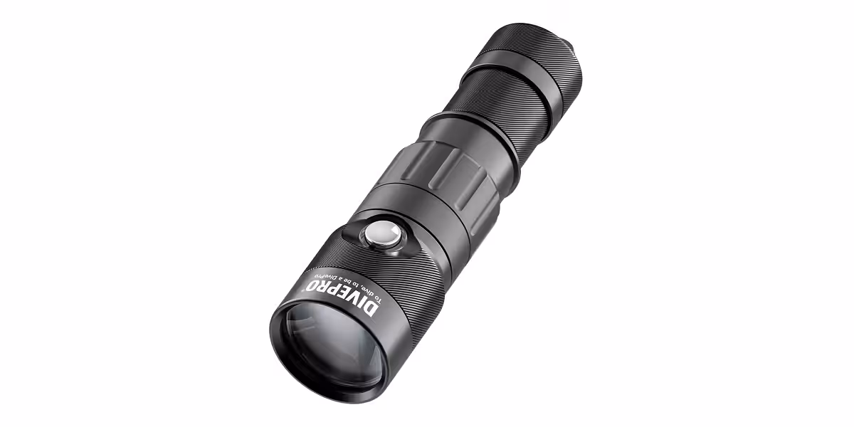 Chez Divepro, le petit phare S17U, de 1 700 lumens pour un faisceau de 6°, offre 2 heures d’autonomie à cette puissance. Inutile de le démonter pour accéder à la charge de sa batterie puisqu’il suffit de déplacer une grosse bague, sécurisée par 4 joints toriques, pour accéder à une prise de charge USB classique. Les leds disposées autour du bouton de mise en marche indiquent la fin de charge. Pratique !